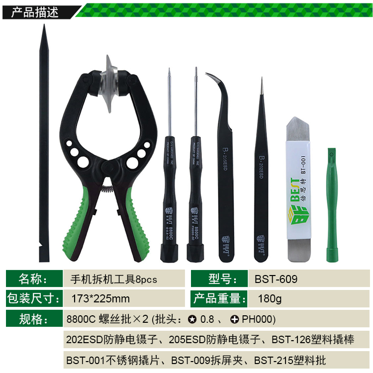 ? 产品名称: 拆机工具8pcs? 产品型号: BST-609? 产品类别: 拆机工具系列