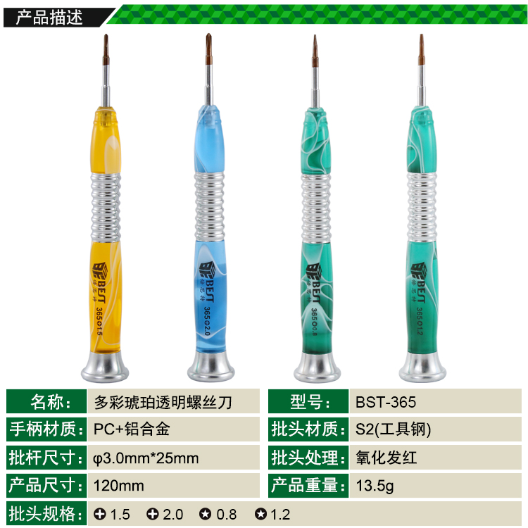 ? 产品名称: 多彩琥珀透明螺丝批? 产品型号: BST-365? 产品类别: 螺丝批系列