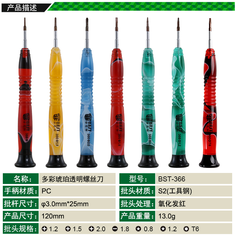 ? 产品名称: 多彩琥珀透明螺丝批? 产品型号: BST-366? 产品类别: 螺丝批系列