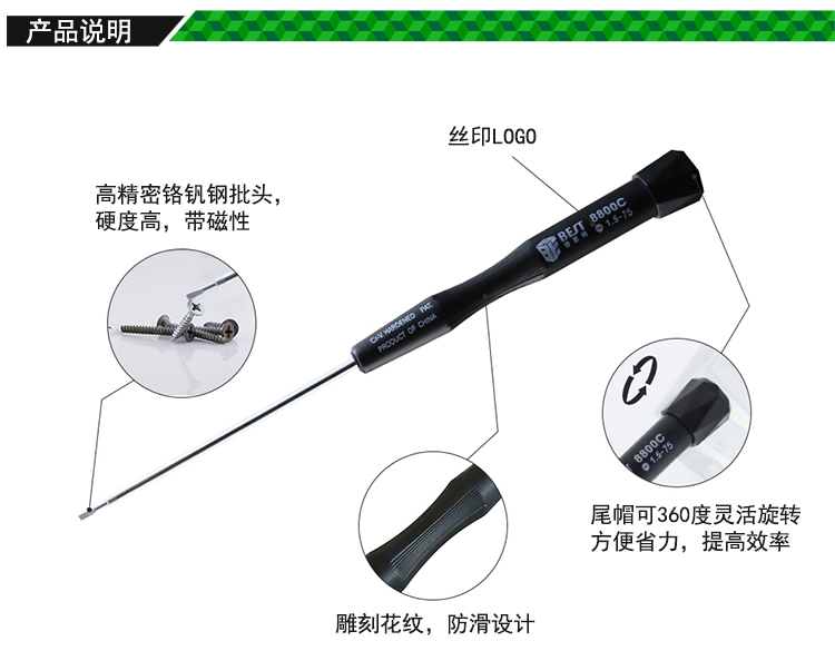 ? 产品名称: 专用手机电脑拆机螺丝刀 75mm加长? 产品型号: BST-8800C? 产品类别: 螺丝批系列