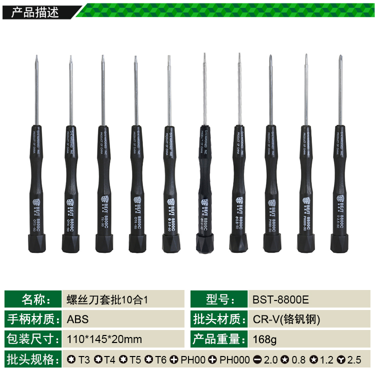 ? 产品名称: 螺丝套批10合1? 产品型号: BST-8800E? 产品类别: 螺丝批系列
