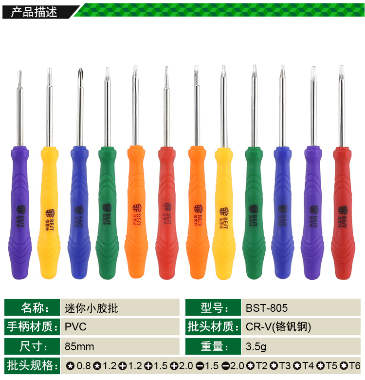 ? 产品名称: 螺丝批 袖珍胶批? 产品型号: BST-805? 产品类别: 螺丝批系列