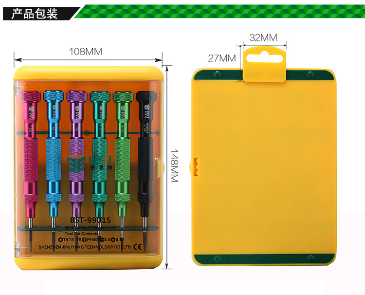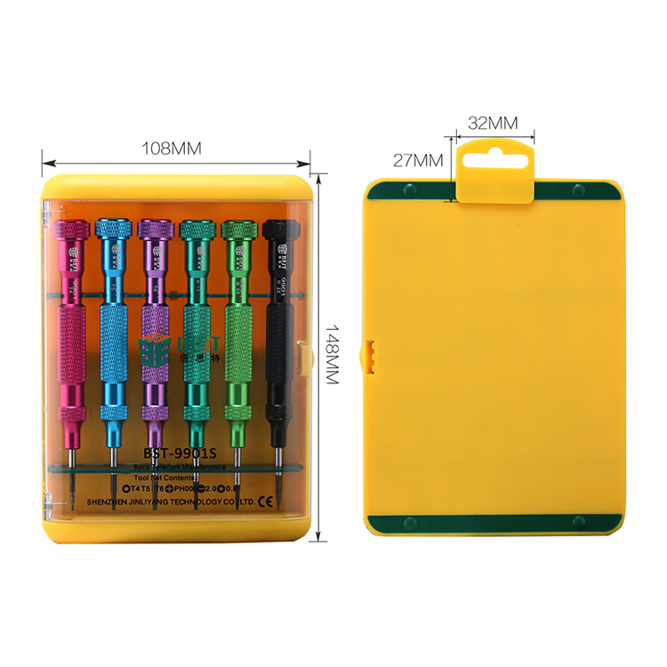 ? 产品名称: 电子电讯工具6pcs 螺丝套批 螺丝刀套装? 产品型号: BST-9901S? 产品类别: 螺丝批系列