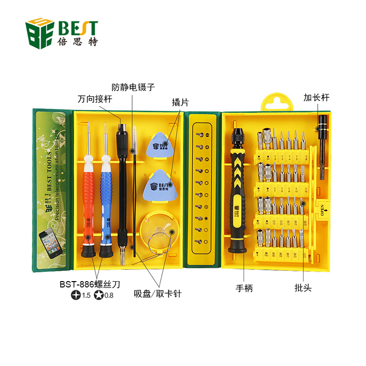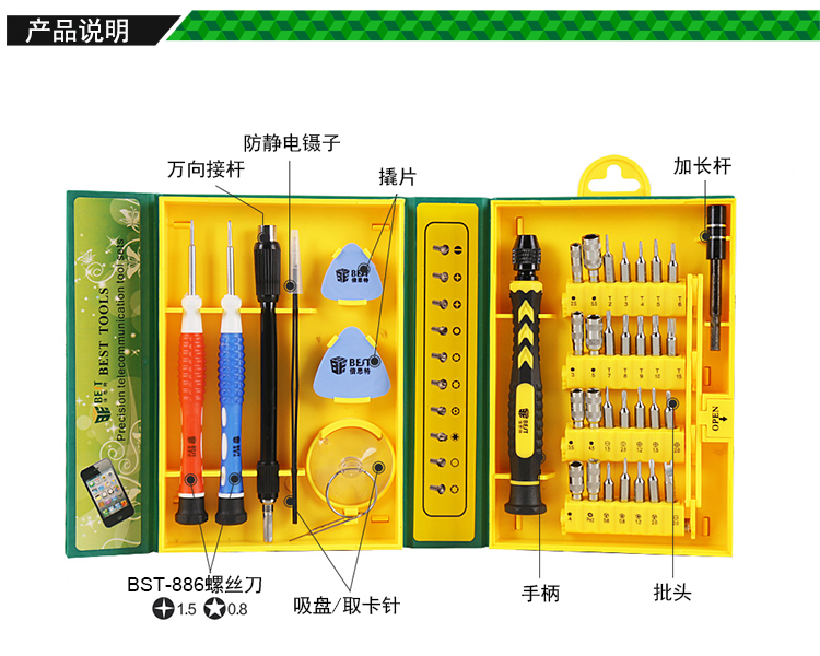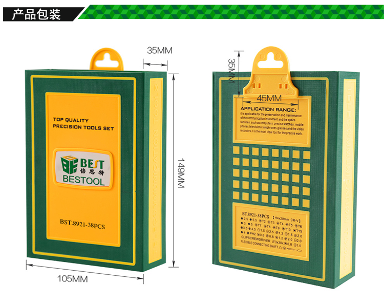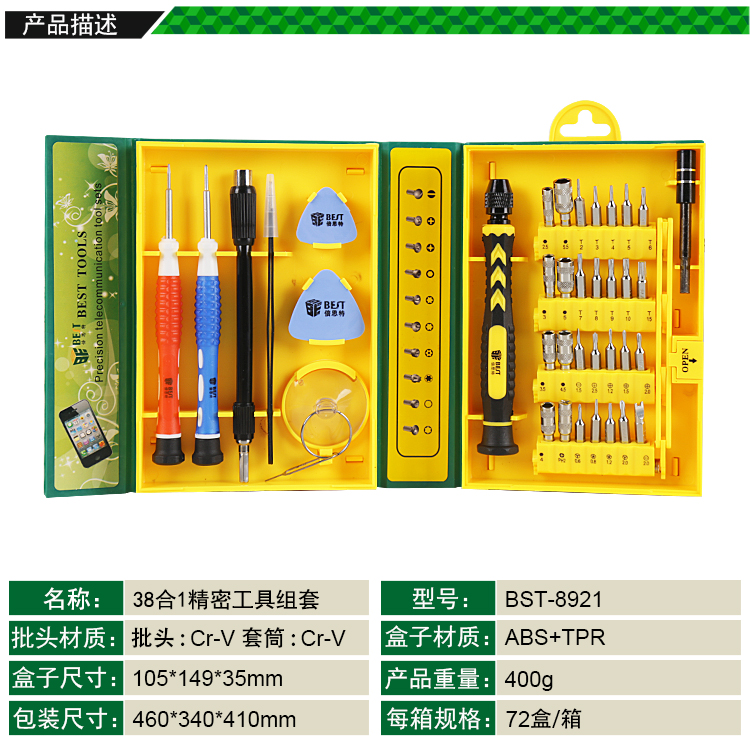 ? 产品名称: 精密工具组套38pcs 高精密螺丝套批? 产品型号: BST-8921? 产品类别: 螺丝批系列