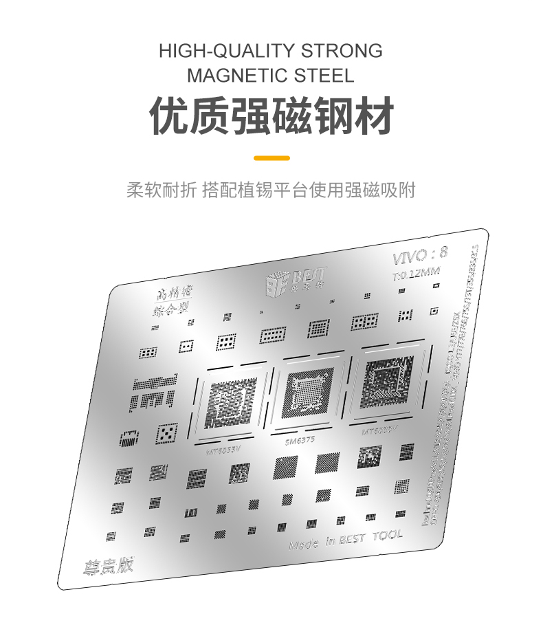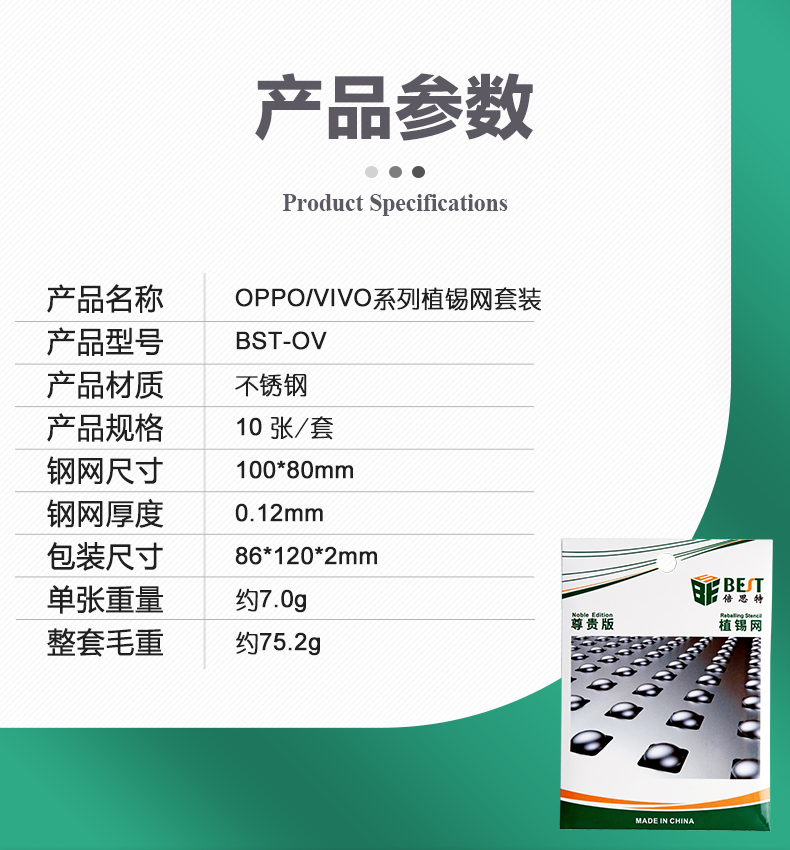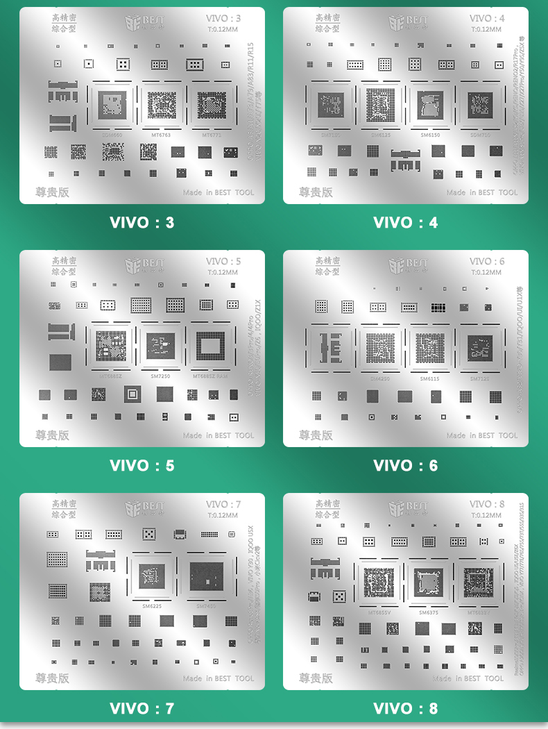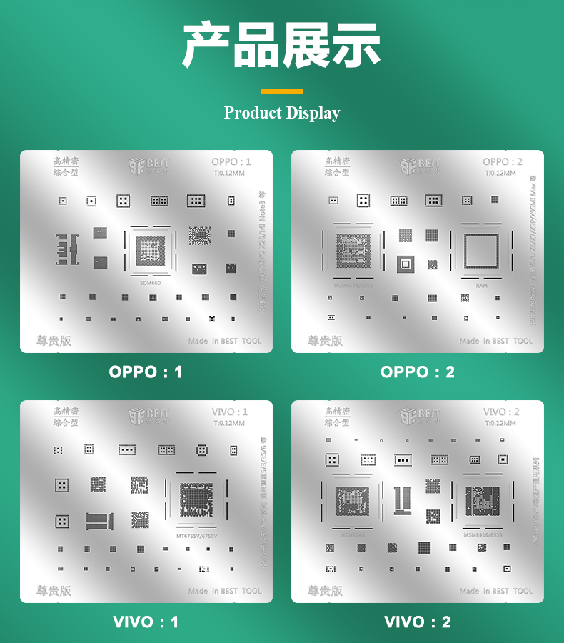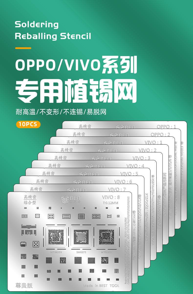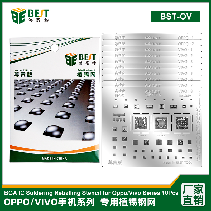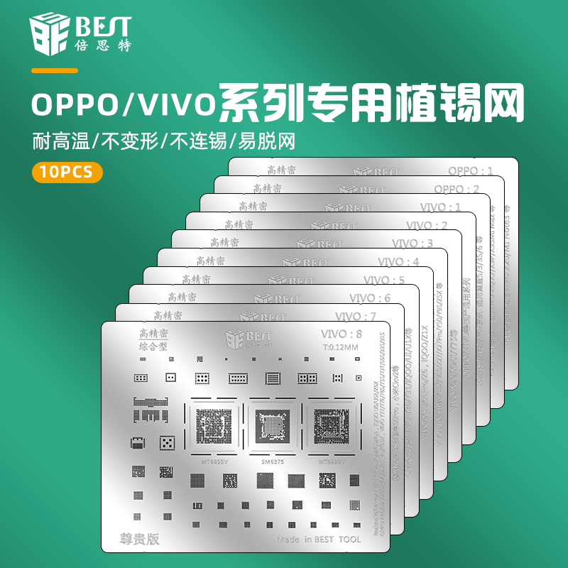 ? 产品名称: OPPO/VIVO系列植锡网10pcs? 产品型号: BST-OV(OPPO:1-2/VIOVO:1-8)? 产品类别: 植锡网系列