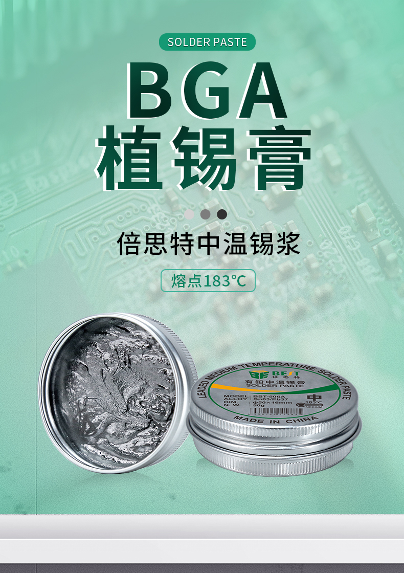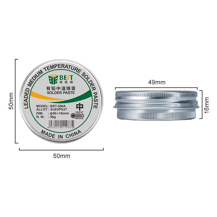 返回当前位置: 首页 / 产品中心 / BST-506A 有铅中温锡膏 Sn63/Pb37 铝罐BGA植锡膏50g