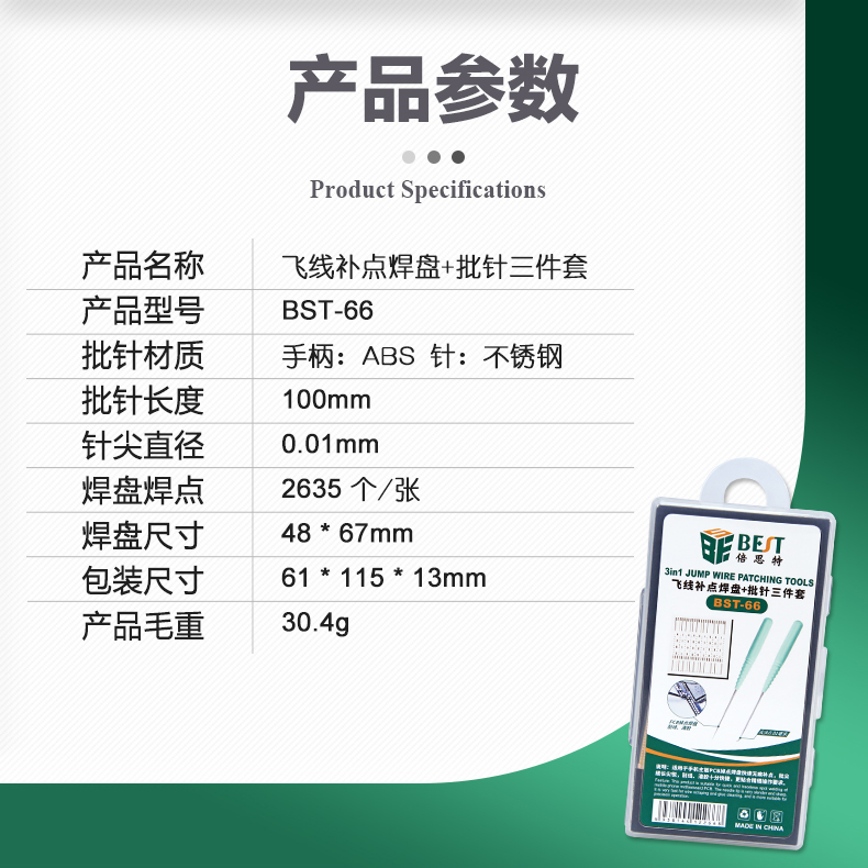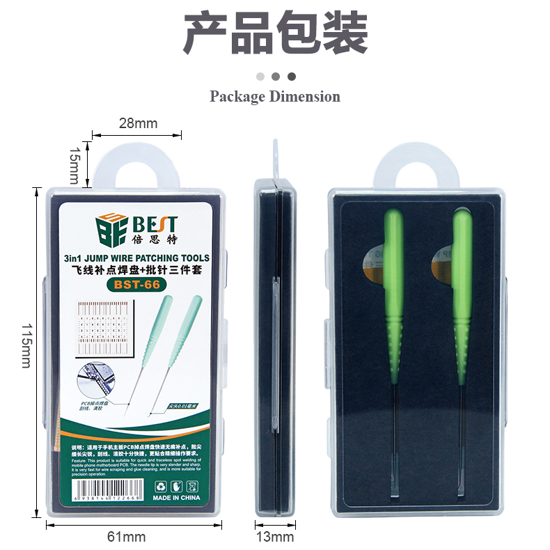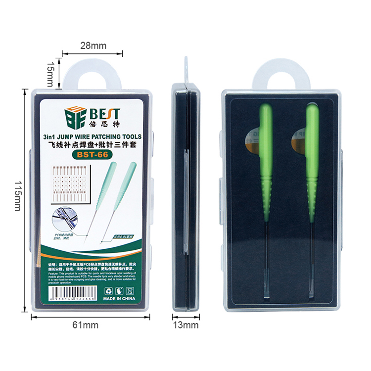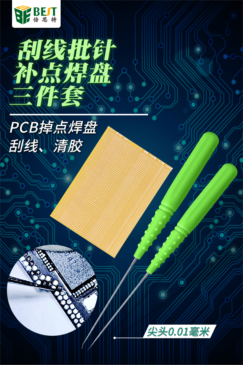 返回当前位置: 首页 / 产品中心 / BST-66 PCB主板掉点专用工具 飞线补点焊盘+批针三件套 刮线挑针锥子定位针