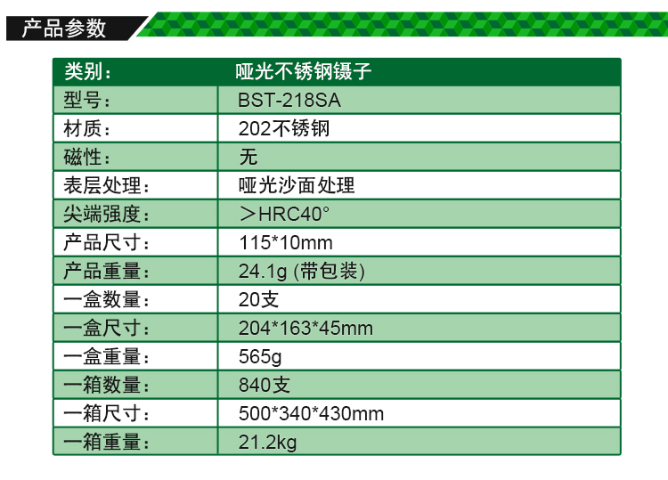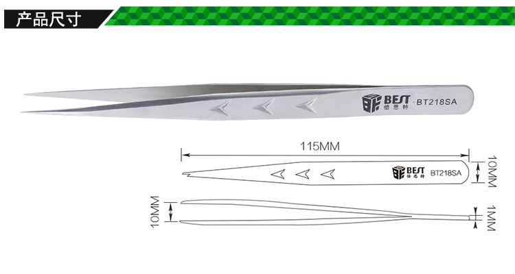 ? 产品名称: 亚光沙面镊子 不锈钢镊子? 产品型号: BST-218SA? 产品类别: 镊子系列