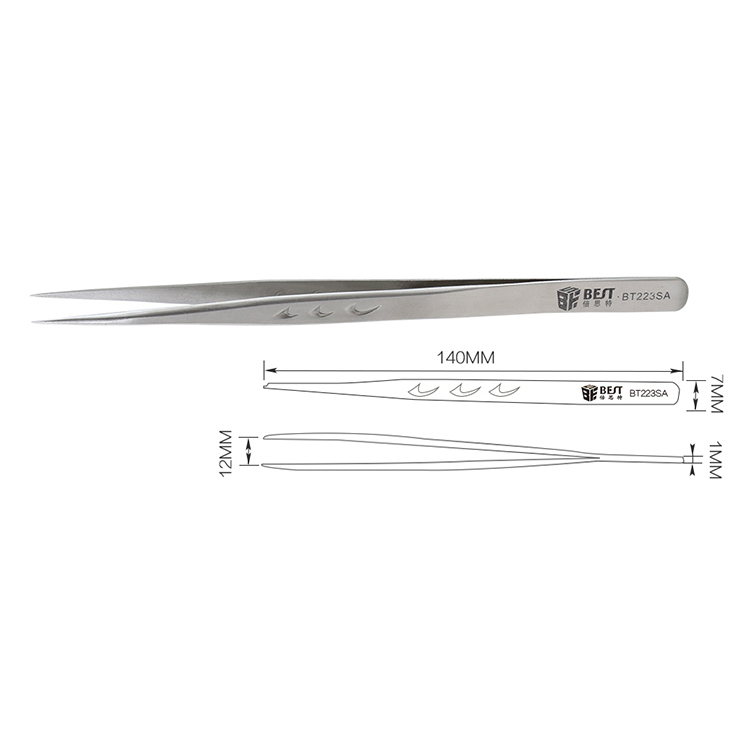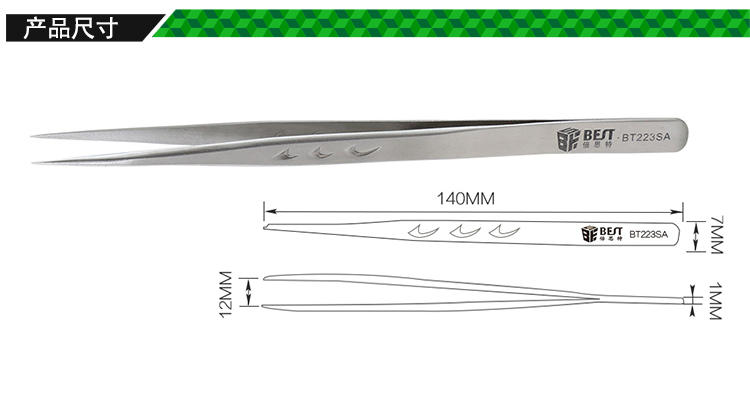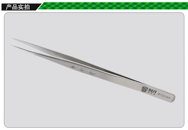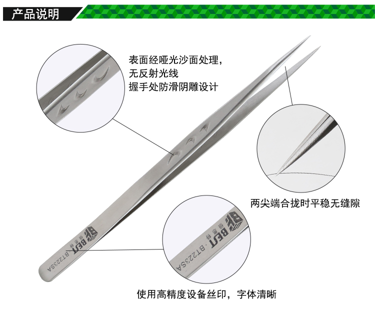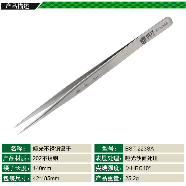 ? 产品名称: 亚光沙面镊子 不锈钢镊子? 产品型号: BST-223SA? 产品类别: 镊子系列