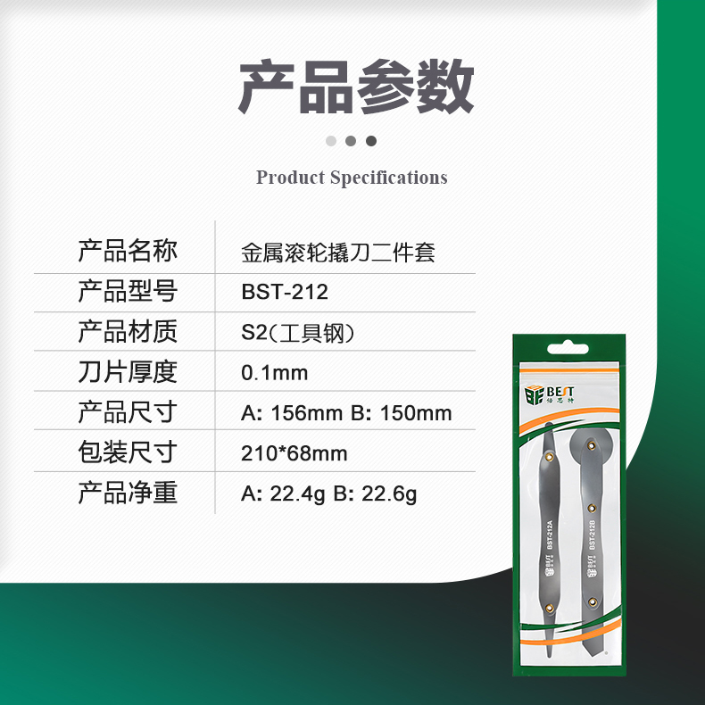 ? 产品名称: 金属滚轮撬刀二件套? 产品型号: BST-212? 产品类别: 撬棒撬片系列