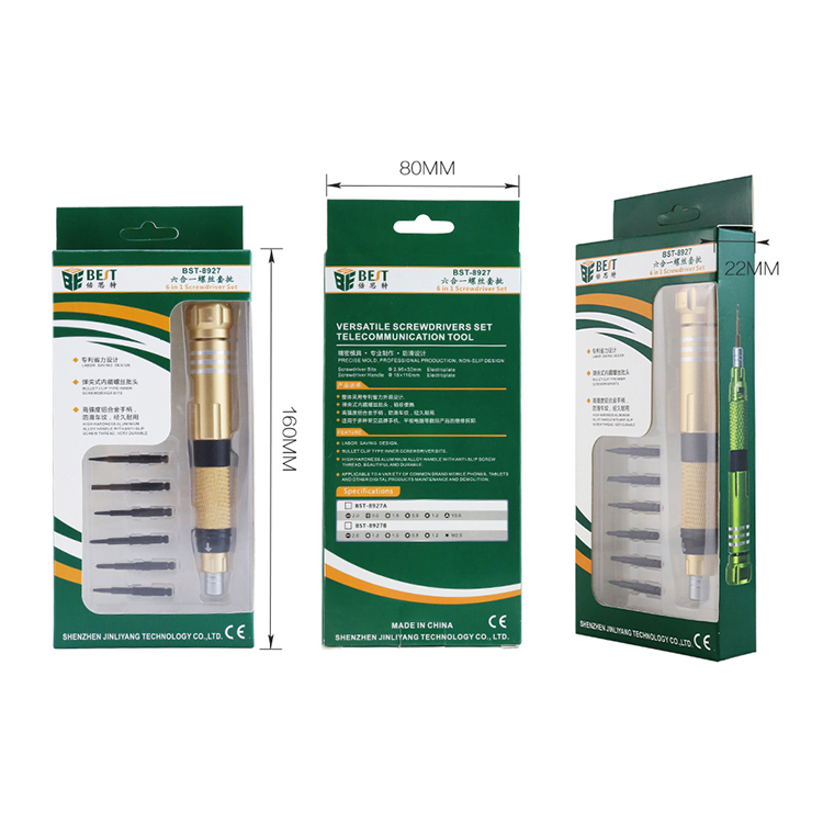 ? 产品名称: 六合一螺丝套批 多功能螺丝刀? 产品型号: BST-8927A? 产品类别: 螺丝批系列