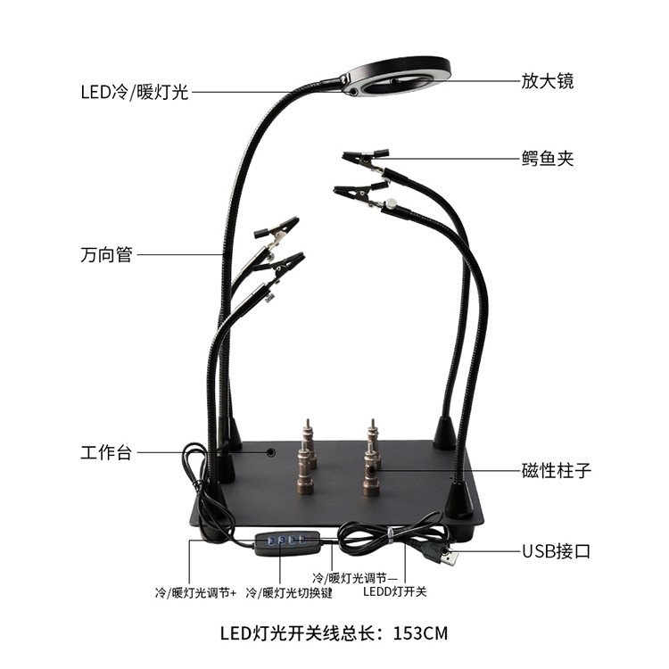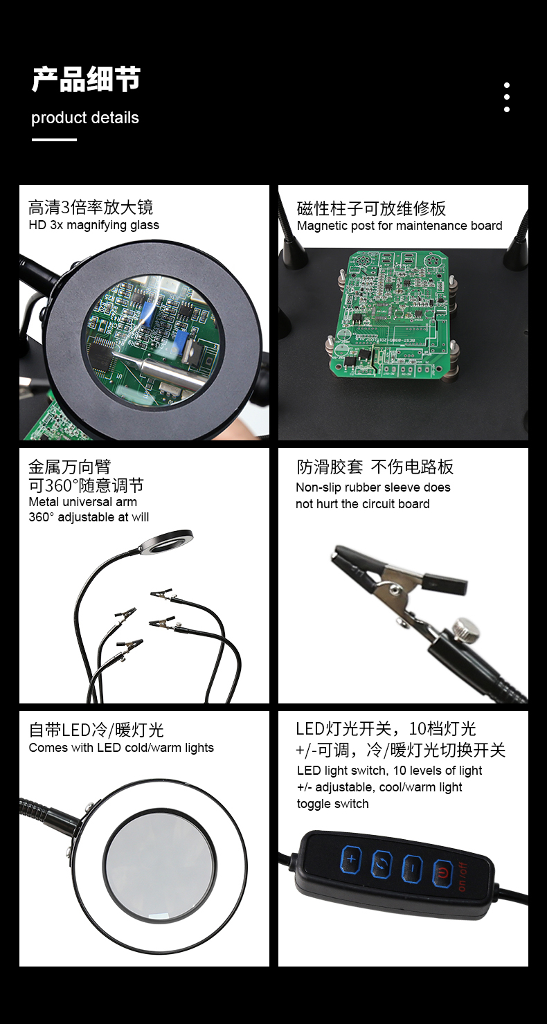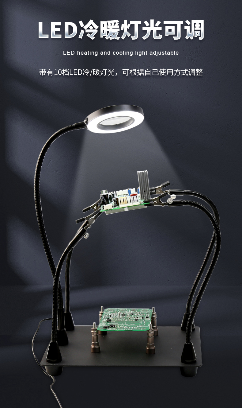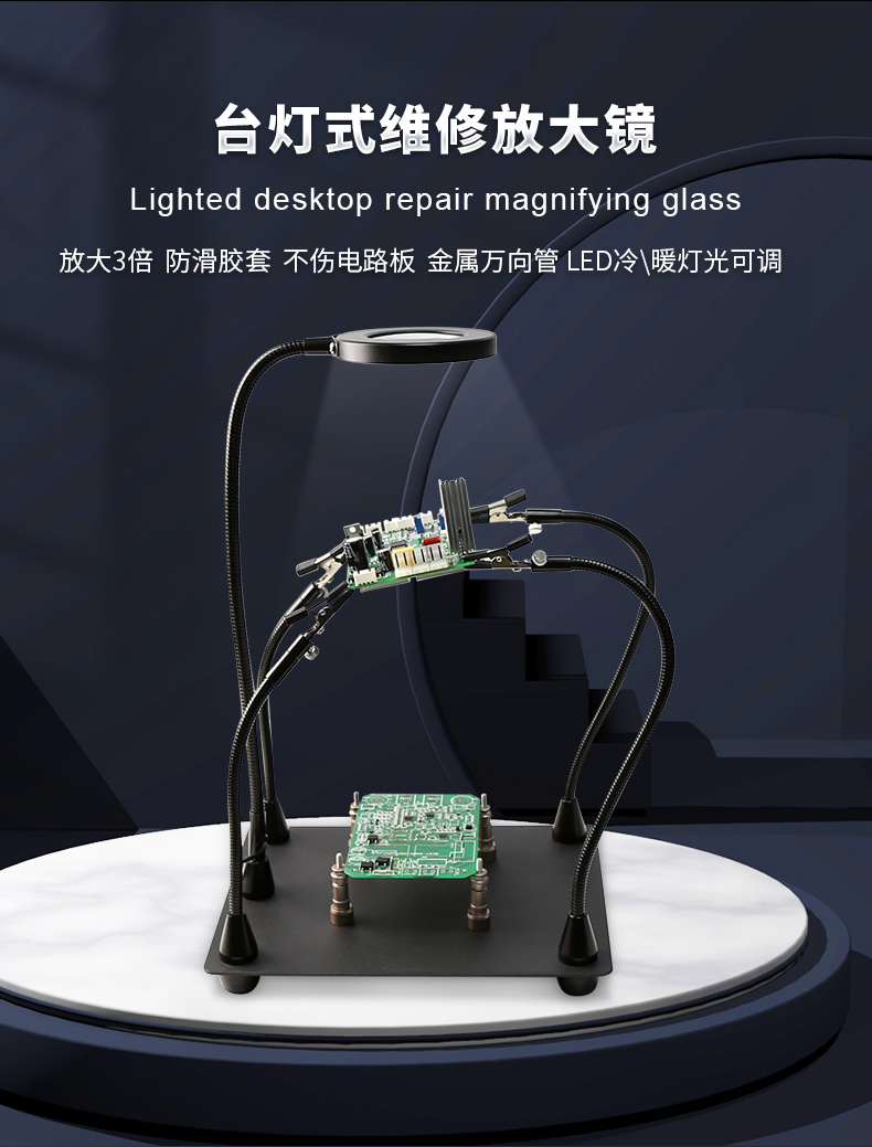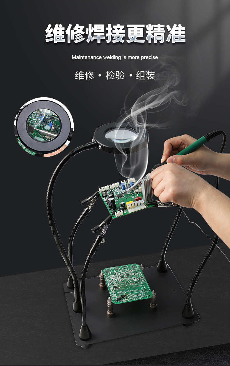 返回当前位置: 首页 / 产品中心 / BST-168L 焊接放大镜 台式手机电路板维修专用辅助夹具 带灯照明工作台灯
