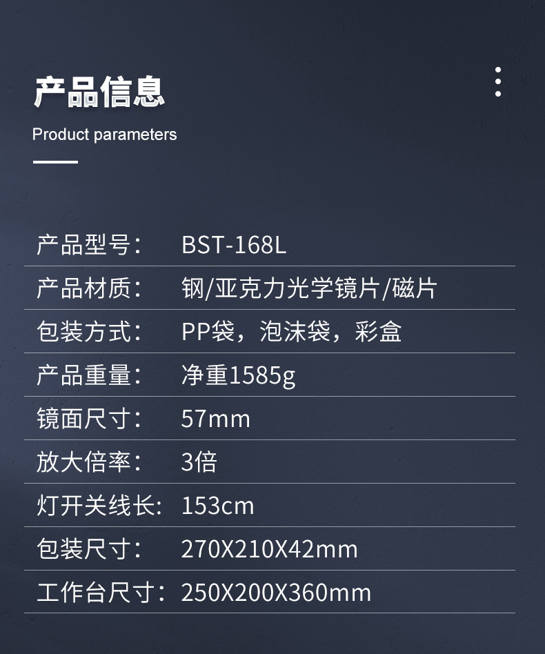 ? 产品名称: 焊接台灯放大镜? 产品型号: BST-168L? 产品类别: 台灯放大镜系列