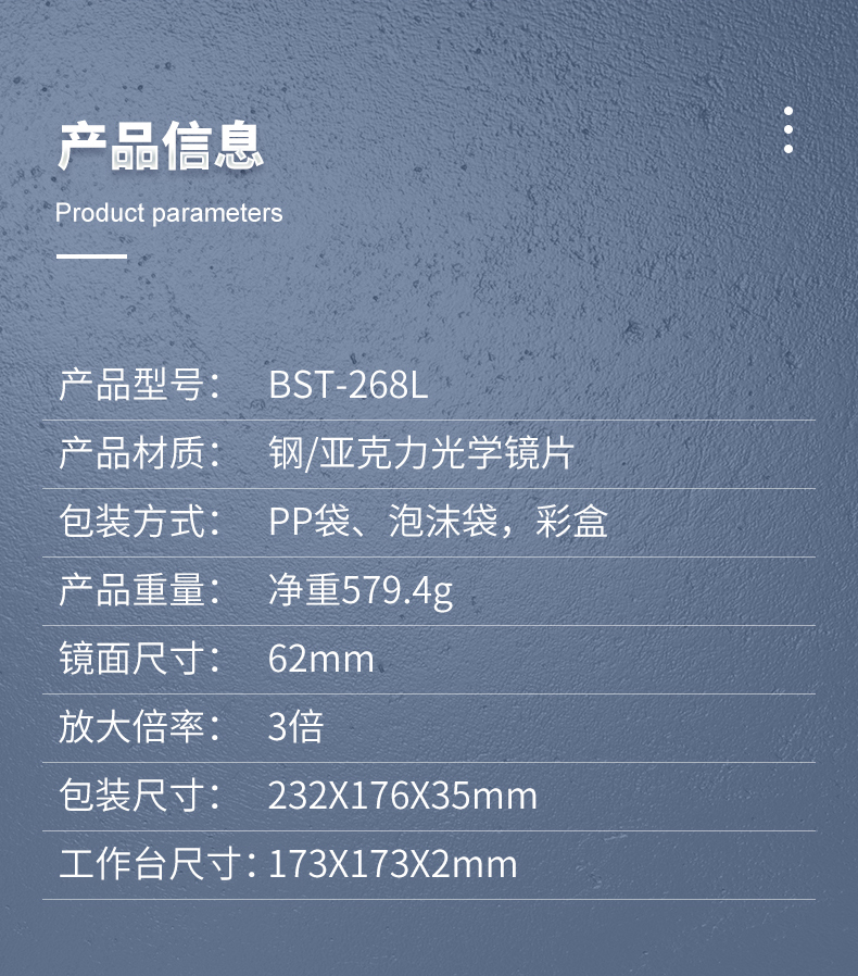 ? 产品名称: 维修焊接台式放大镜? 产品型号: BST-268L? 产品类别: 台灯放大镜系列