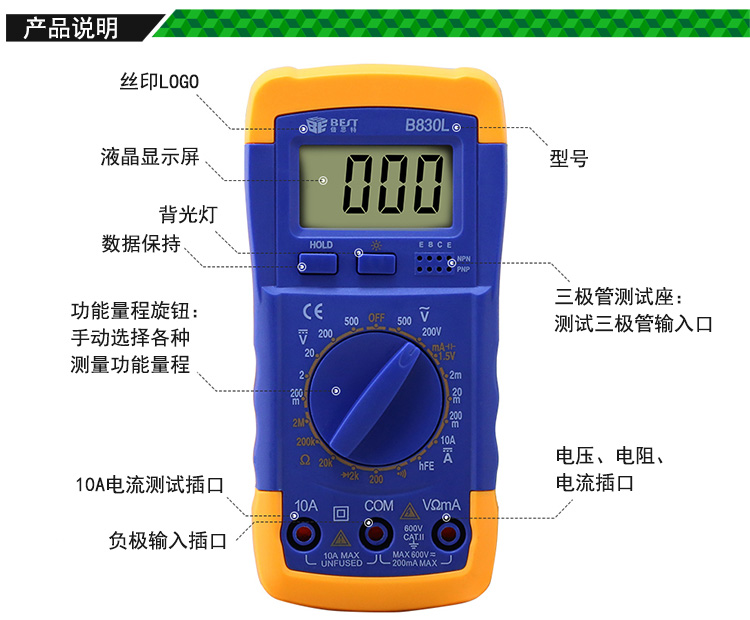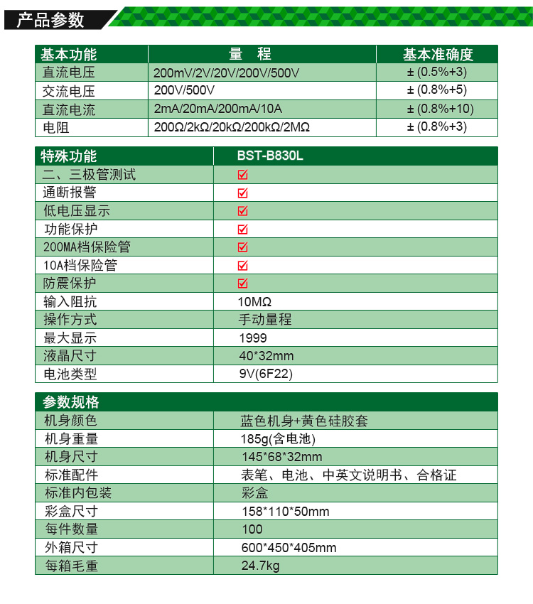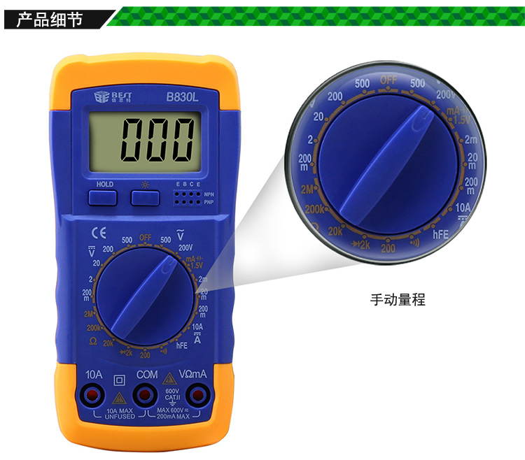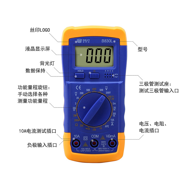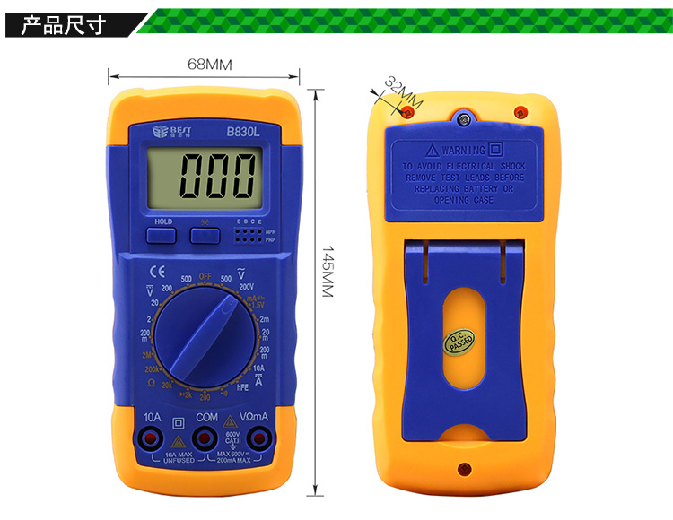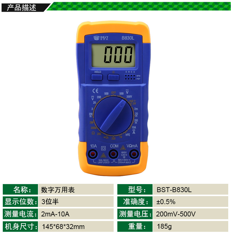 ? 产品名称: 数字万用表? 产品型号: BST-B830L? 产品类别: 万用表系列