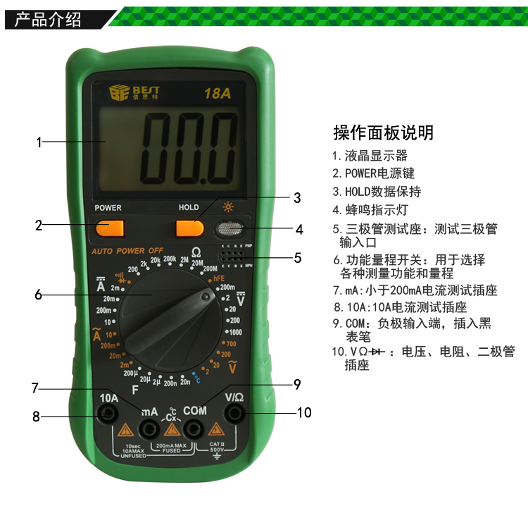 ? 产品名称: 数字万用表? 产品型号: BST-18A? 产品类别: 万用表系列