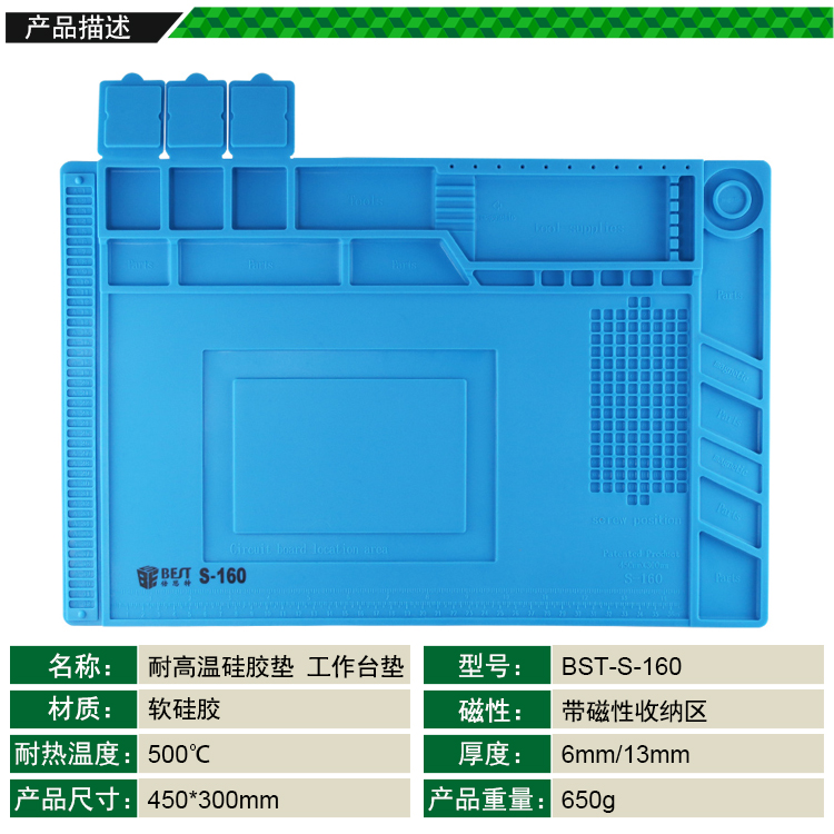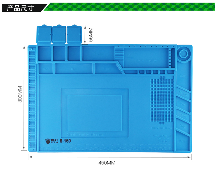 返回当前位置: 首页 / 产品中心 / BST-S-160 耐高温硅胶垫 工作台垫 带磁性收纳区 螺丝记忆定位区 零件收纳盒 隔热垫