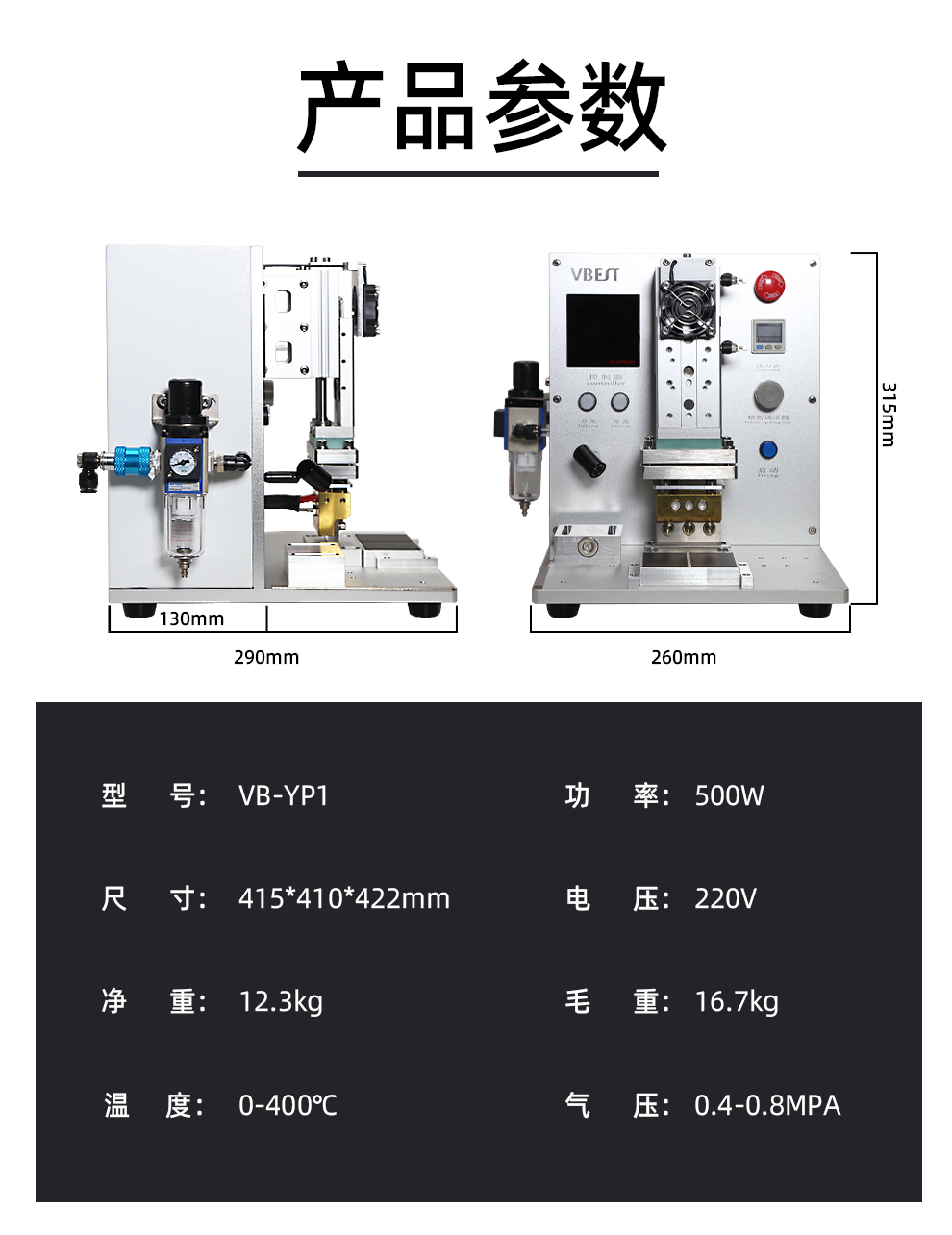 返回当前位置: 首页 / 产品中心 / VB-YP1 Mini精密压排机 手机软排线维修压排脉冲热压机 软排线焊接 手机排线热压机 液晶模组维修设备