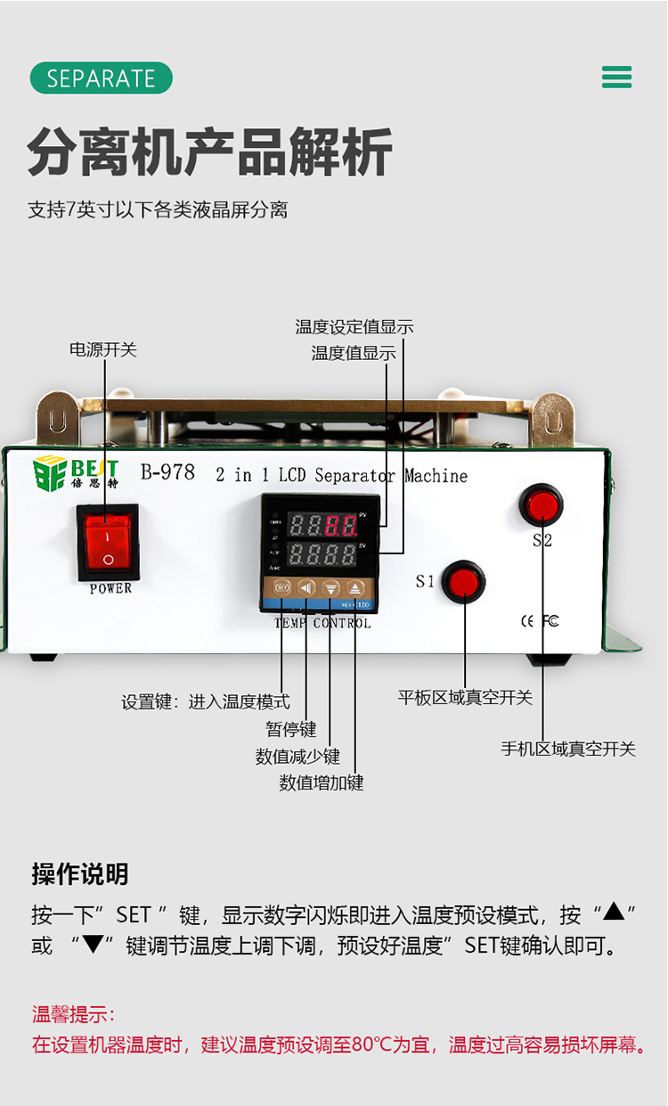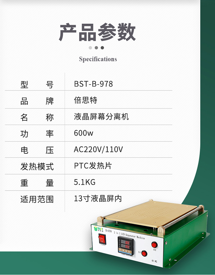 ? 产品名称: 液晶屏分离机 真空拆屏机? 产品型号: BST-B-978? 产品类别: 分离机系列