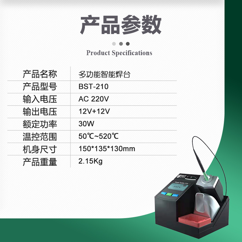 ? 产品名称: 多功能智能焊台? 产品型号: BST-210? 产品类别: 焊台烙铁系列