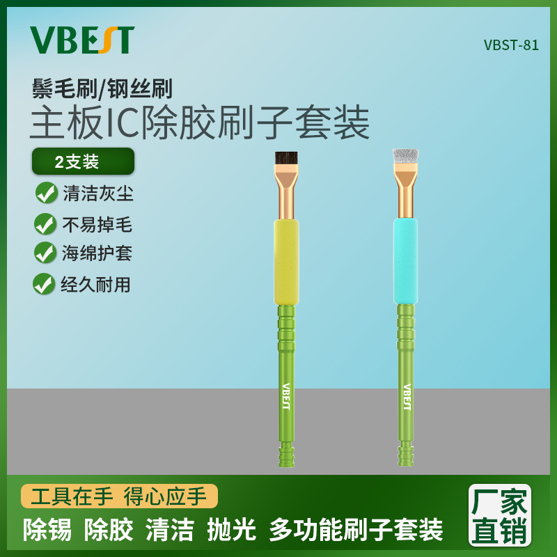 返回当前位置: 首页 / 产品中心 / VBST-81 主板IC除胶刷子套装 不锈钢丝硬毛刷猪鬓毛刷 IC主板除胶清理灰尘海棉套手柄刷 手机焊盘清理毛刷 IC清洁焊油除黑胶硬毛刷两支装