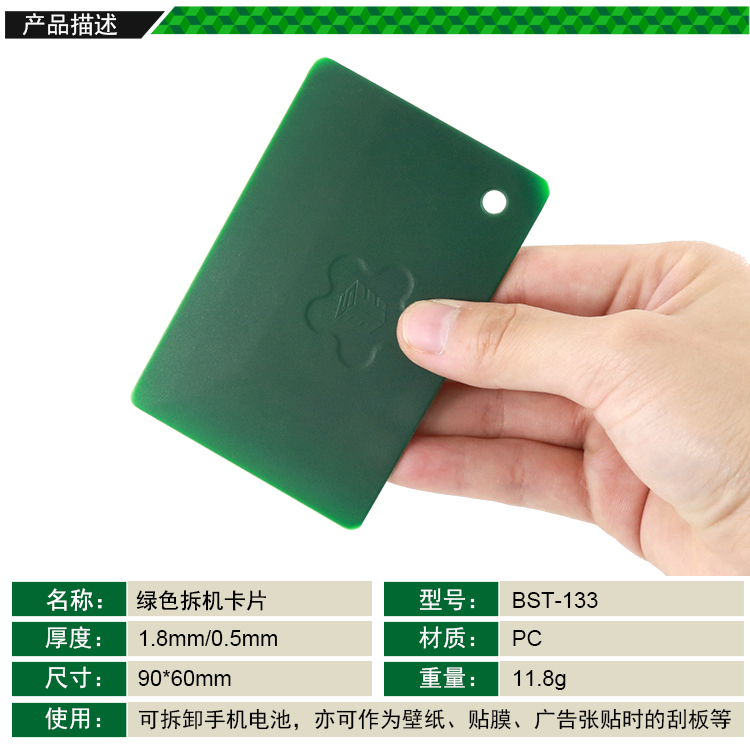 ? 产品名称: 拆机卡片 绿色卡片式撬片? 产品型号: BST-133? 产品类别: 撬棒撬片系列