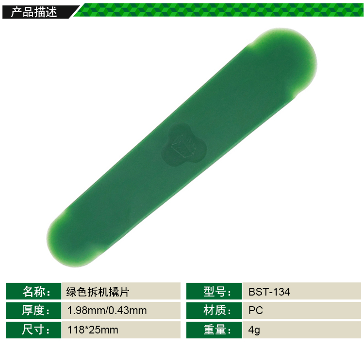 ? 产品名称: 拆机撬片 绿色拆机撬棒? 产品型号: BST-134? 产品类别: 撬棒撬片系列
