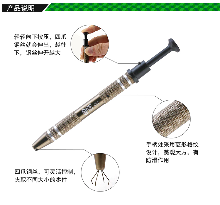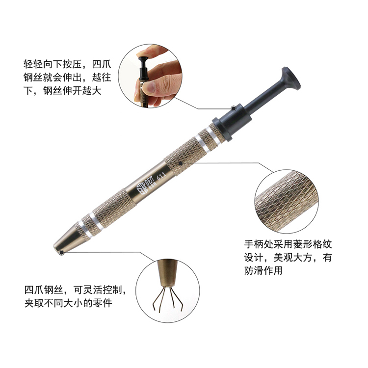 返回当前位置: 首页 / 产品中心 / BST-611 零件抓取器 四爪取物器 IC抓取器