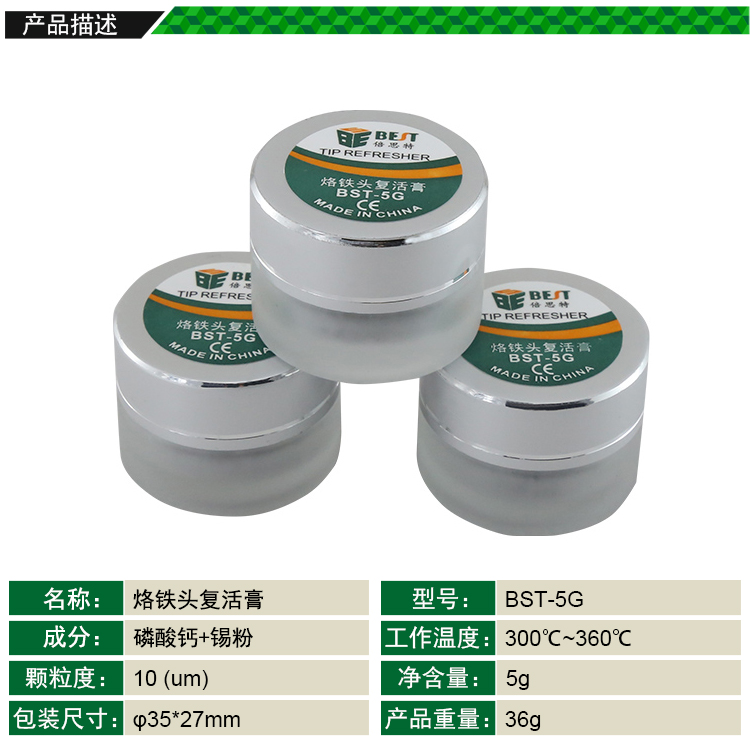 ? 产品名称: 烙铁头复活膏? 产品型号: BST-5G? 产品类别: 锡浆焊油系列