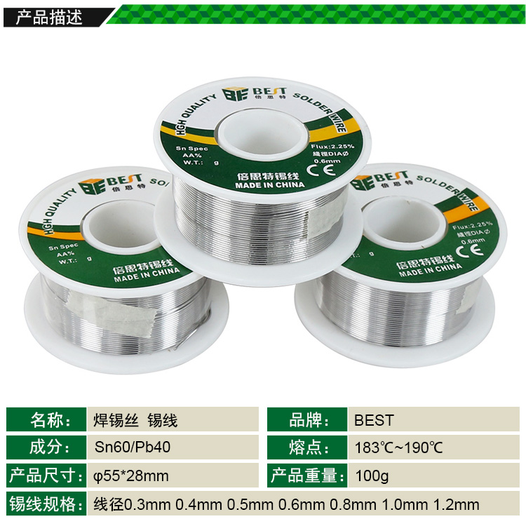 ? 产品名称: 高锡量锡线 高级锡线 优质锡线? 产品品牌: BEST? 产品类别: 锡线耗材系列