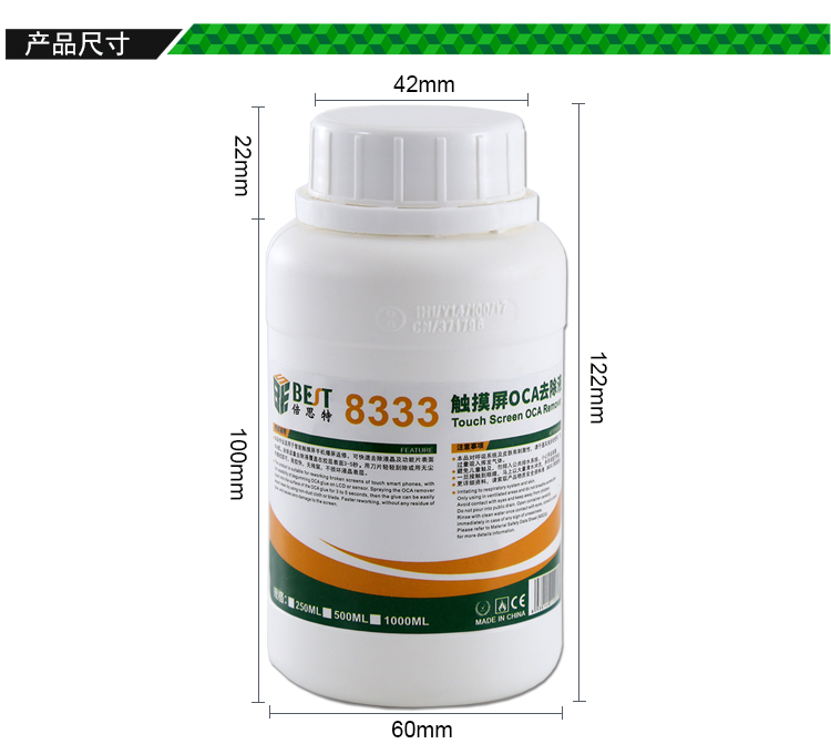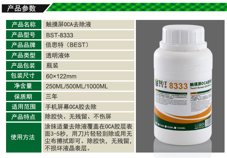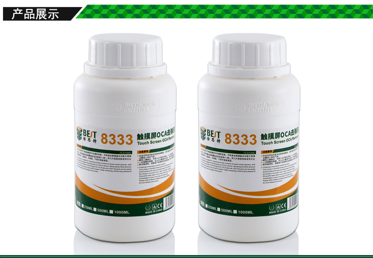 ? 产品名称: 触摸屏OCA去除液? 产品型号: BST-8333? 产品类别: 清洁剂辅料系列