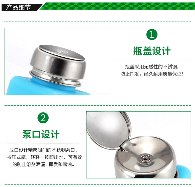 ? 产品名称: 按压式酒精瓶 洗板水瓶? 产品型号: BST-60? 产品类别: 清洁剂辅料系列