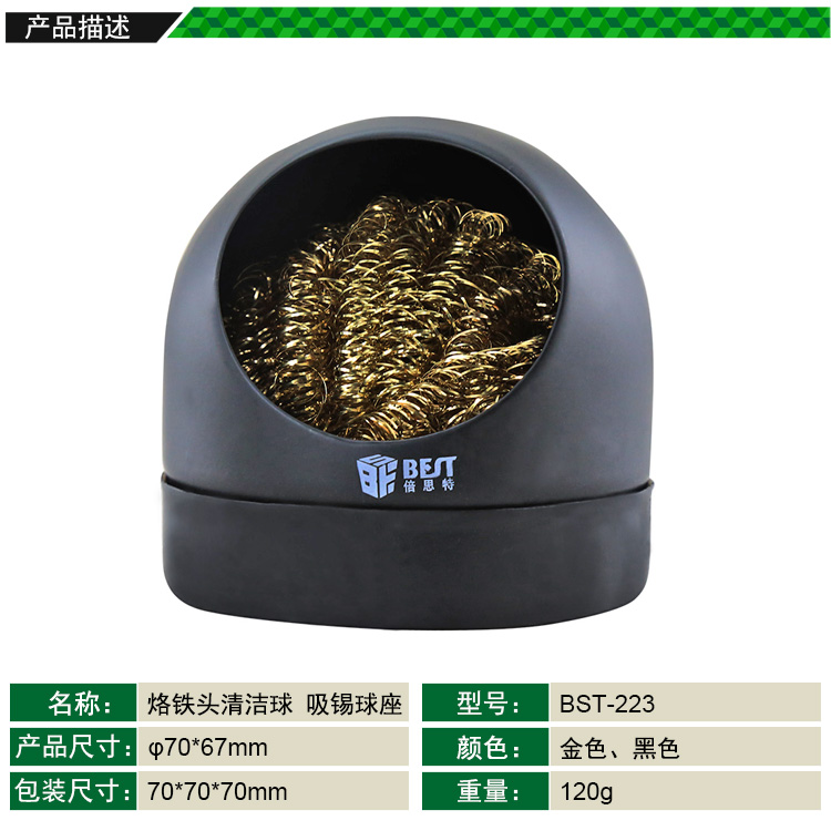 ? 产品名称: 吸锡球带座 烙铁咀清洁球? 产品型号: BST-223? 产品类别: 吸锡器系列