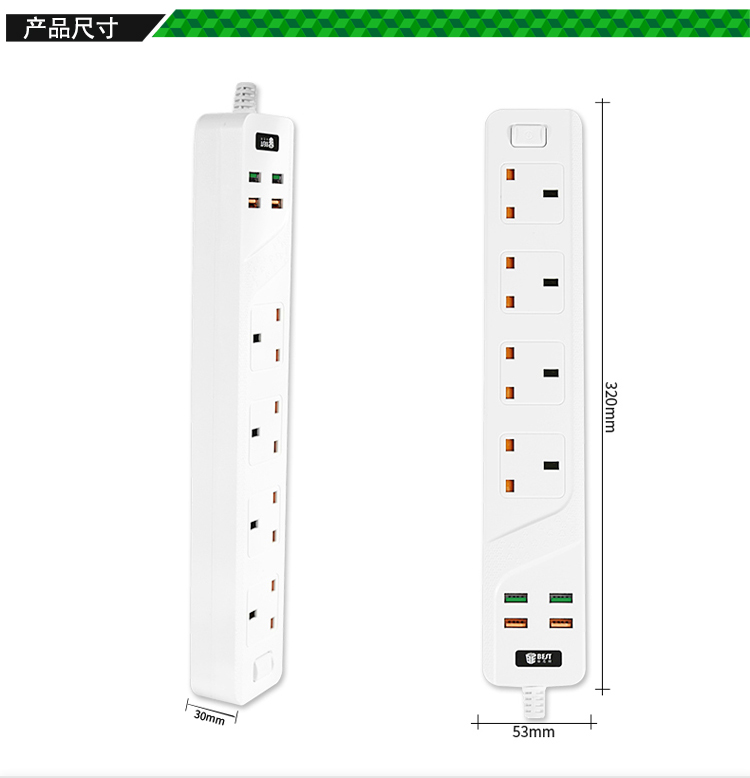 返回当前位置: 首页 / 产品中心 / BST-P03 多功能英规排插 4位英规插口带4位USB输出口(英规插头)