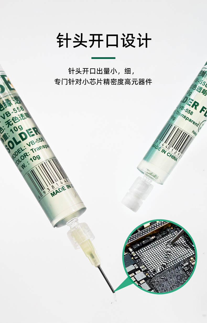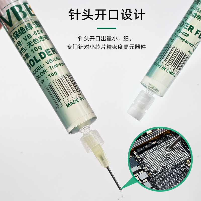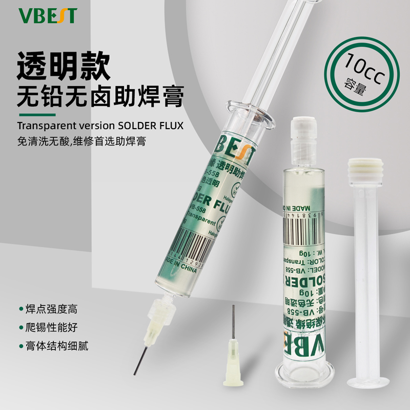 返回当前位置: 首页 / 产品中心 / VB-558 环保绝缘透明助焊膏 针筒式电子元器件焊接助焊膏 免清洗手机维修透明焊油10g