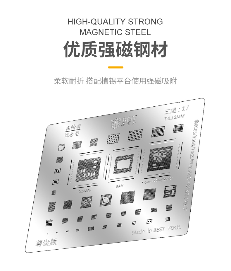 返回当前位置: 首页 / 产品中心 / BST-SAM 三星系列专用植锡网 多用植锡方孔定位钢网 植锡卡套装10pcs