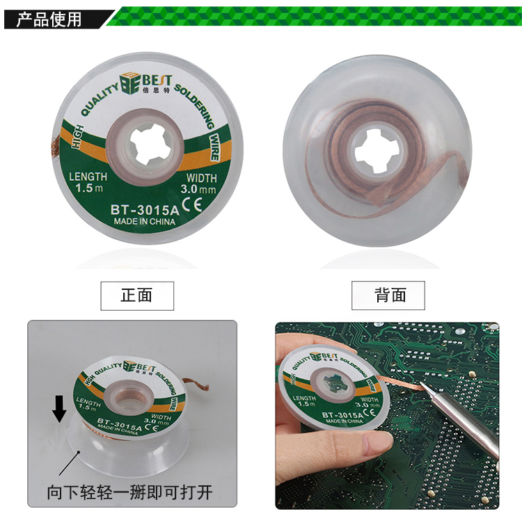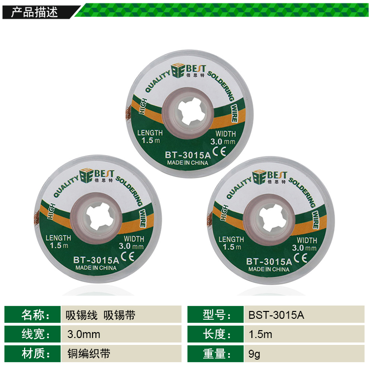 ? 产品名称: 吸锡线 吸锡带? 产品型号: BST-3015A? 产品类别: 吸锡线系列