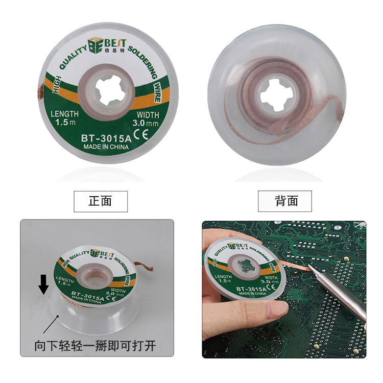 返回当前位置: 首页 / 产品中心 / BST-3015A 吸锡线 非卤素低残渣免清洗吸锡带 清理焊盘必备