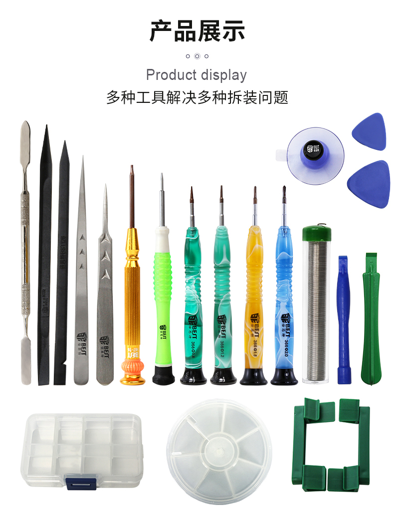 返回当前位置: 首页 / 产品中心 / BST-122 多功能维修手机工具包可维修家用电器相机手机电脑钟表等 21pcs