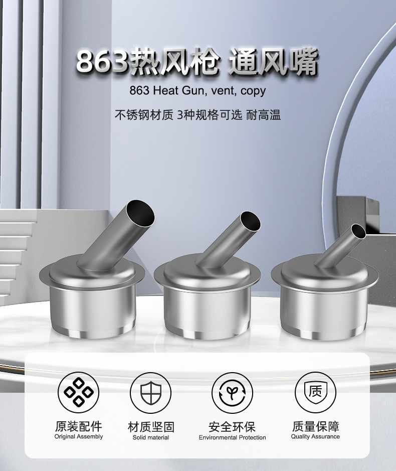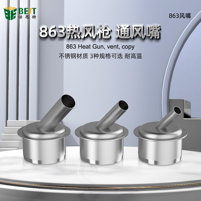 返回当前位置: 首页 / 产品中心 / BST-863风枪嘴三合一 原装热风枪嘴 手机维修焊接数显拆焊台弯咀 耐高温不锈钢风枪咀