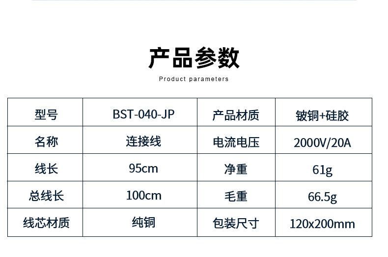 ? 产品名称: 香蕉双头测试线? 产品型号: BST-040-JP? 产品类别: 表笔线系列