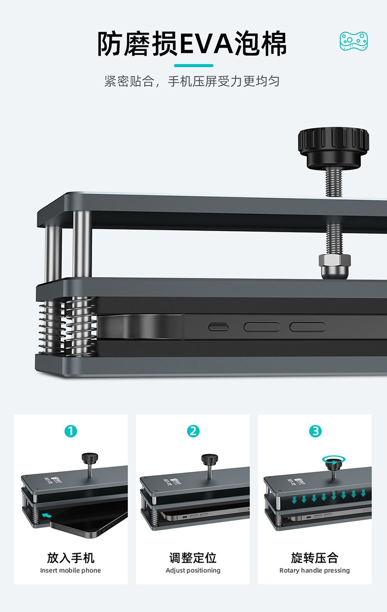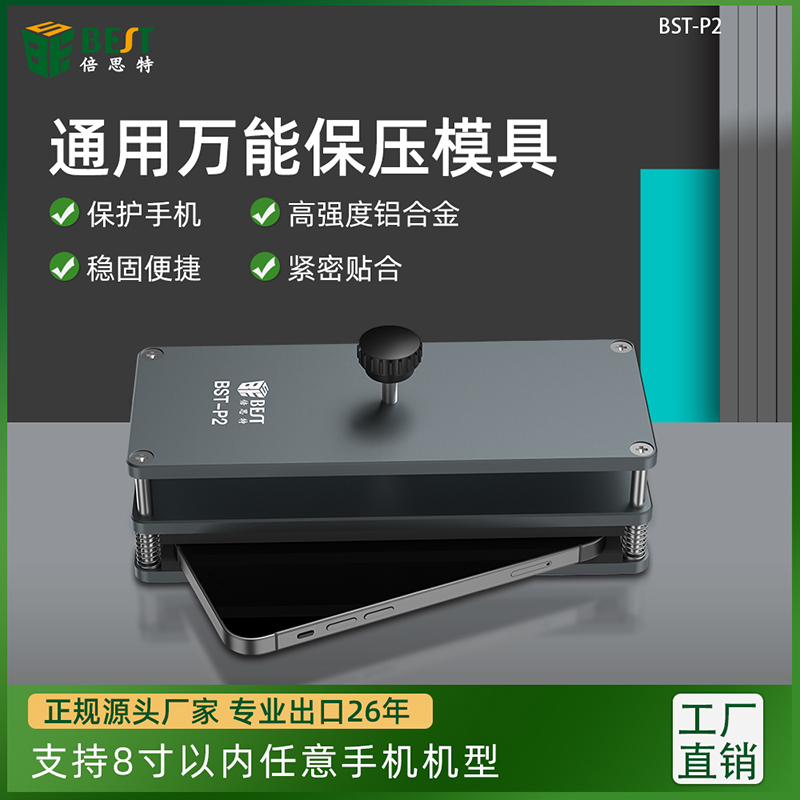 返回当前位置: 首页 / 产品中心 / BST-P2 手机屏幕贴合通用维修固定压屏后玻璃通用夹具 万能保压模具 手机屏幕压合器
