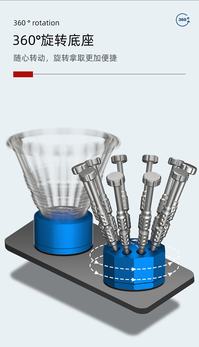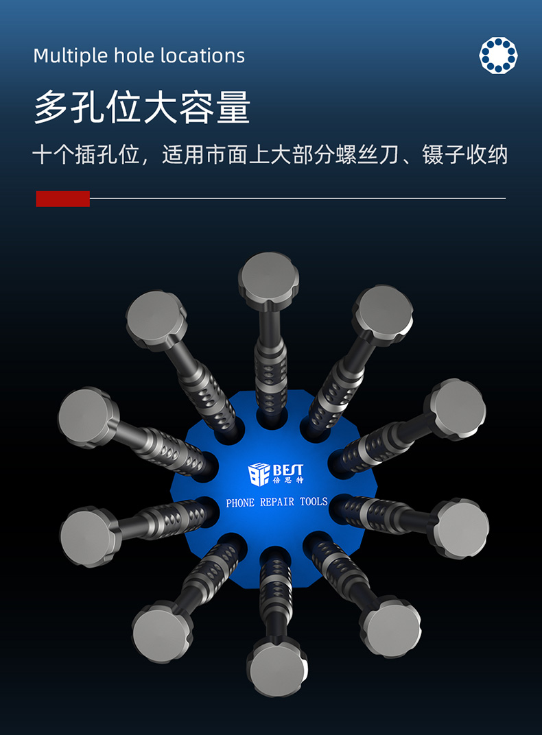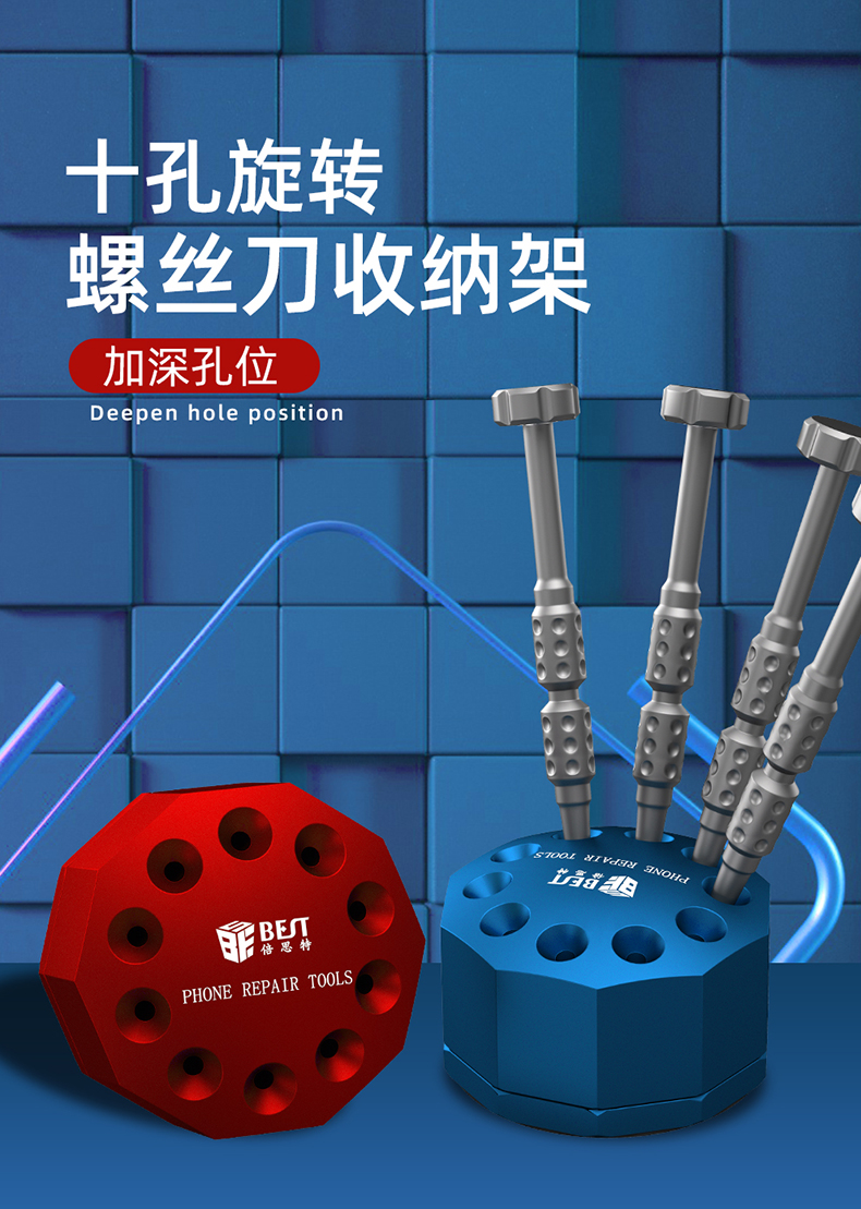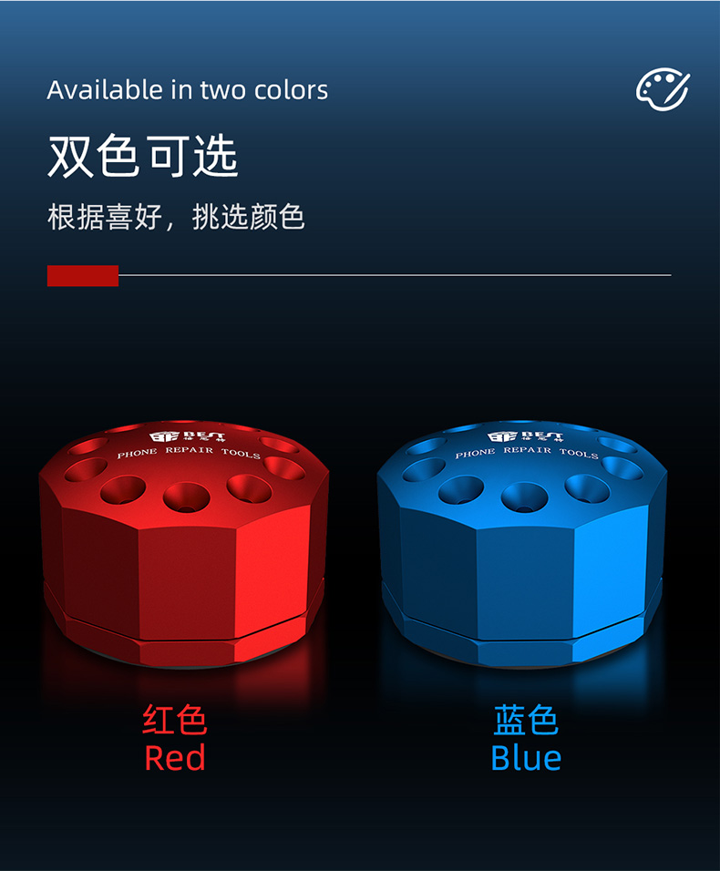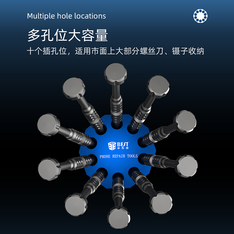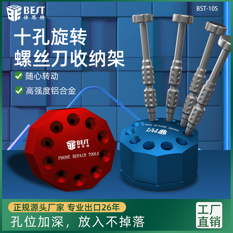 返回当前位置: 首页 / 产品中心 / BST-10S 螺丝刀铝合金底座收纳架 手机维修工具便携收纳盒 铝合金旋转底座 螺丝刀刻刀镊子收纳架