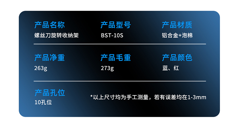 ? 产品名称: 螺丝刀旋转底座收纳架? 产品型号: BST-10S? 产品类别: 元件盒系列