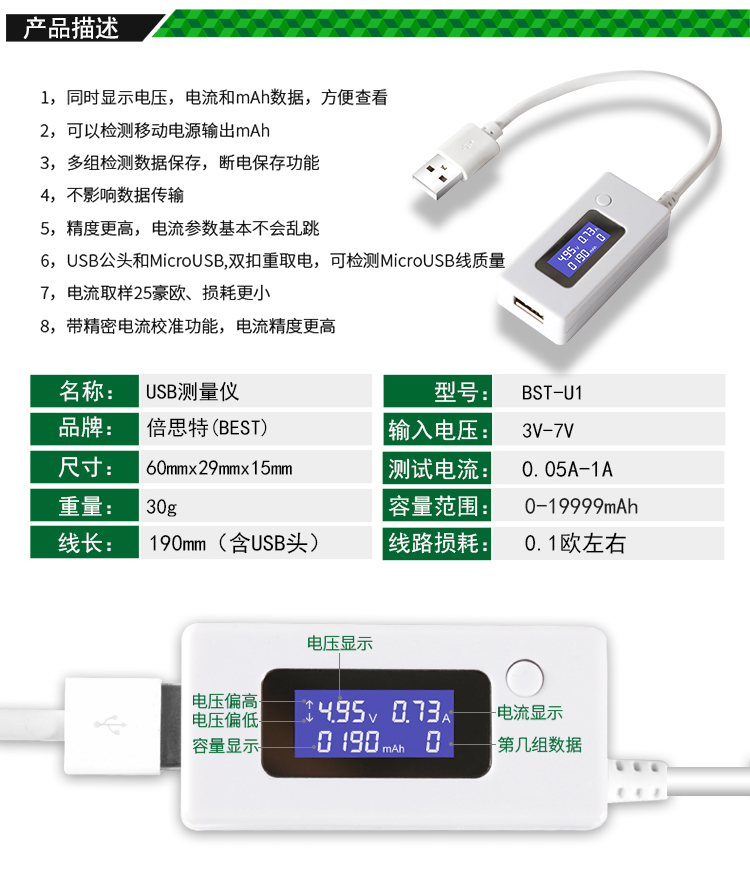 ? 产品名称: USB电压电流容量检测仪? 产品型号: BST-U1? 产品类别: 综合类系列