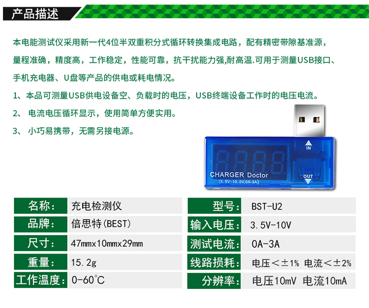 ? 产品名称: USB电流电压检测仪? 产品型号: BST-U2? 产品类别: 综合类系列