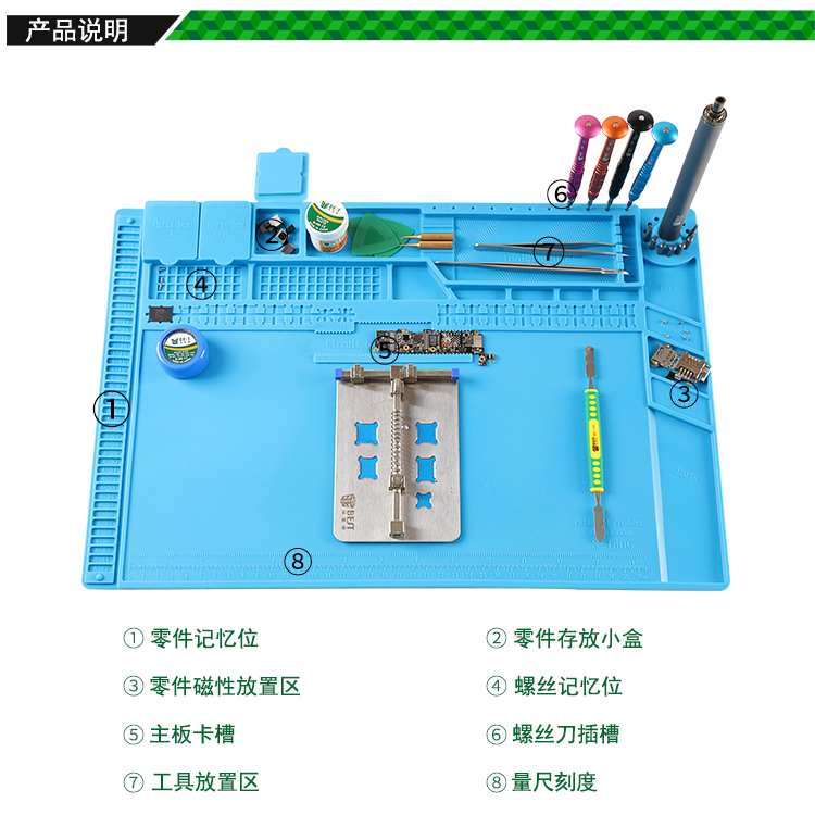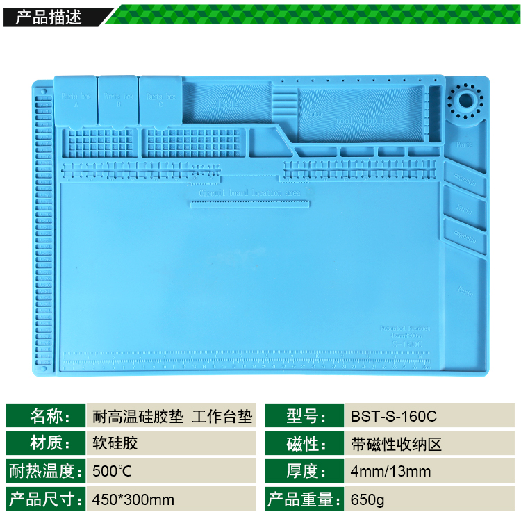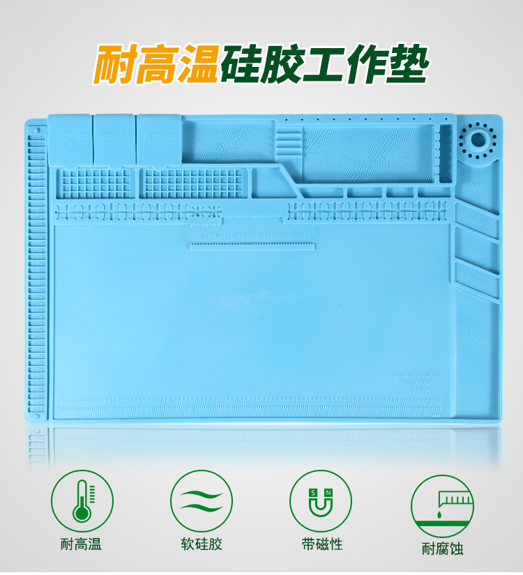 返回当前位置: 首页 / 产品中心 / BST-S-160C 耐高温硅胶垫 工作台垫 带磁性收纳区 螺丝记忆定位区 零件收纳盒 CPU卡槽 隔热垫