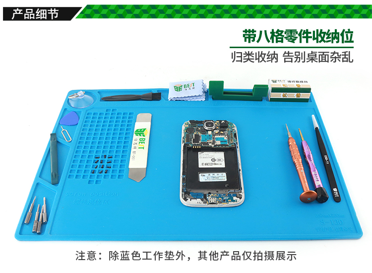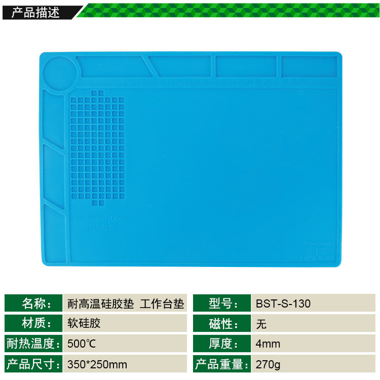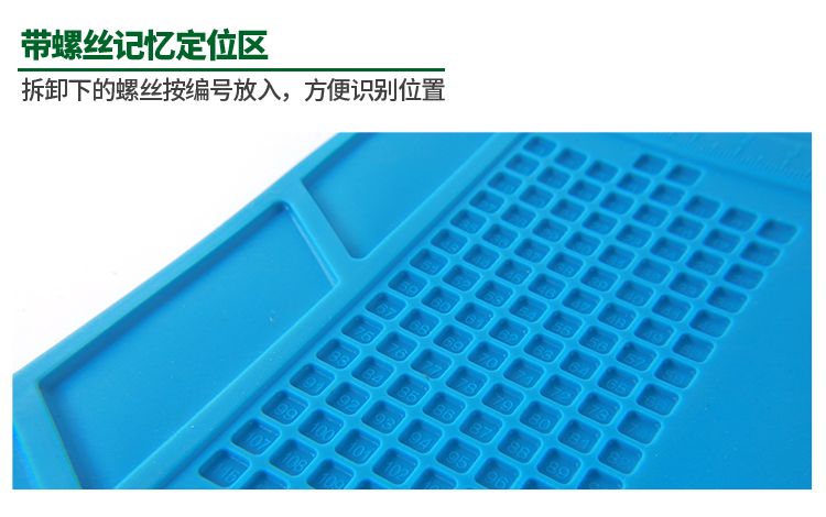 返回当前位置: 首页 / 产品中心 / BST-S-130 耐高温硅胶垫 工作台垫 带八格零件收纳 螺丝记忆定位区 隔热垫
