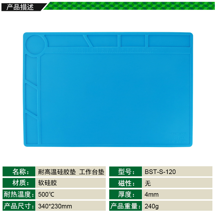 返回当前位置: 首页 / 产品中心 / BST-S-120 耐高温硅胶垫 工作台垫 带八格零件收纳 隔热垫