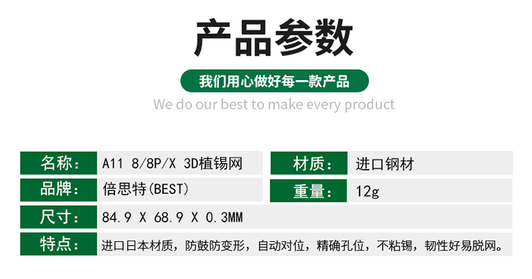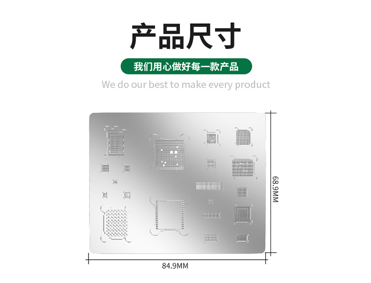 ? 产品名称: 3D凹槽定位植锡钢网? 产品型号: BST-A11? 产品类别: 植锡网系列